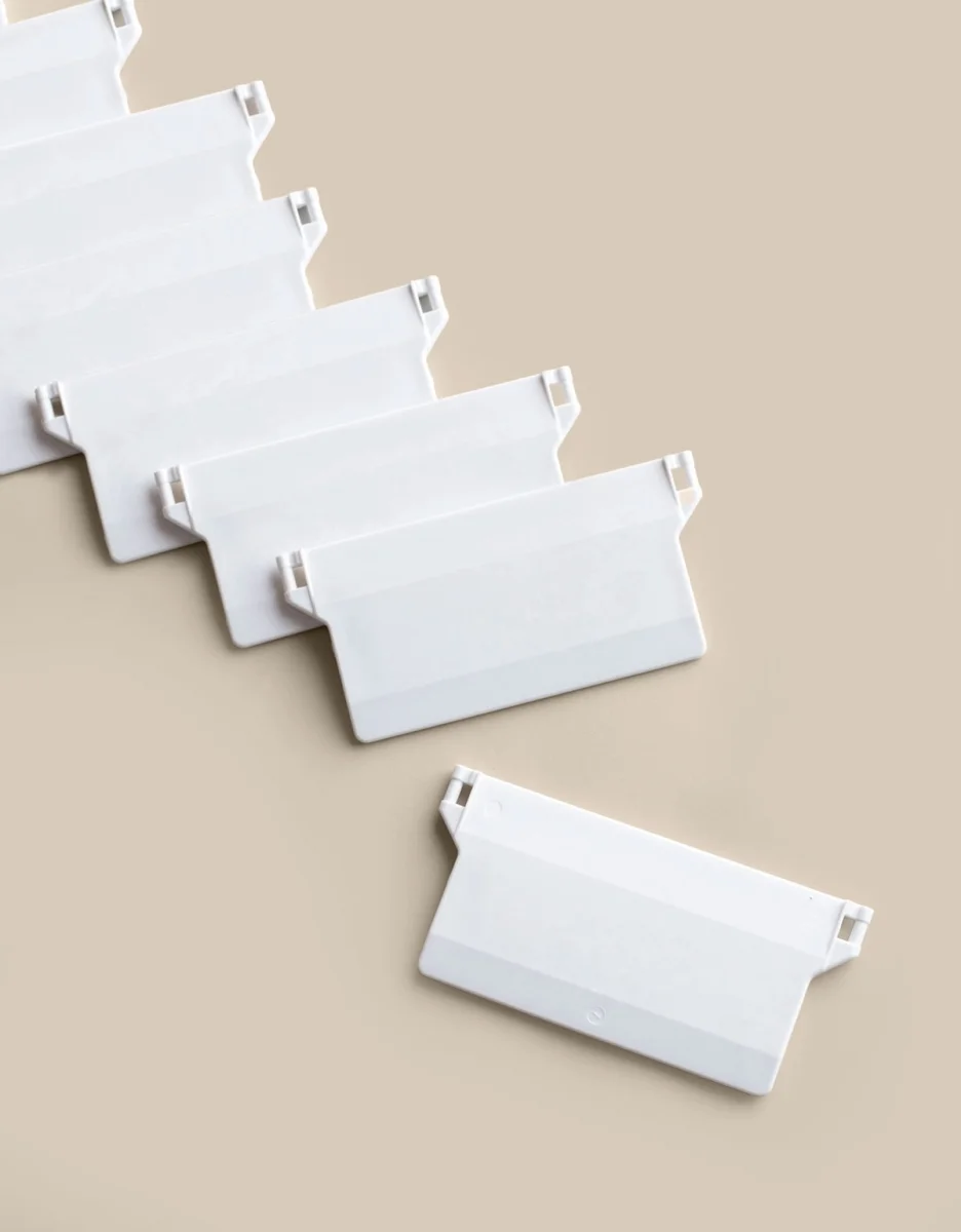 Bottenvikt för lamellgardiner. 89 mm passar för vår Monoflex lamellgardin, och 127 mm för Opti Pro lamellgardin. Förpackningen innehåller 8 st.