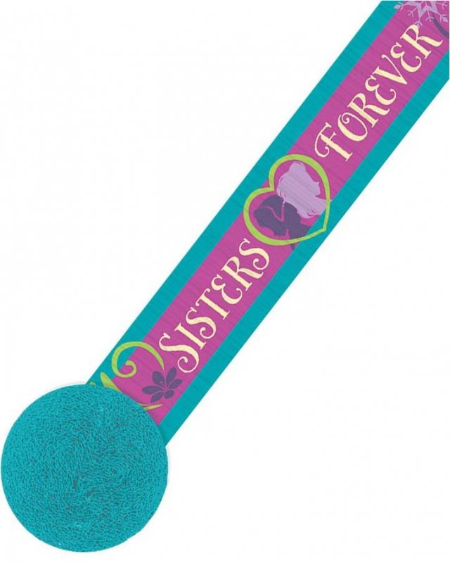 Rulla ut denna 9 meter långa crepebanderoll runt i rummet för att verkligen skapa stämning av Frost. Motivet går i grönt och lila med texten ”Sisters Forever”.