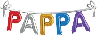 En ballong som är tillverkad av folie. Ballongerna som är 41 cm stora stavar PAPPA och träs på det medföljande bandet.