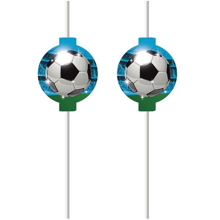 Pimpa glasen med festliga sugrör med fotbollar på.