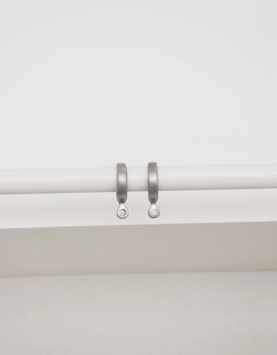 Gardinring i satinkrom med gjuten ögla. Finns i två storlekar där ringen har diametern 38/46 mm och 25/33 mm. Passar då till stänger med diametern 26/28 mm och 18/20 mm. Förpackningen innehåller 10 stycken.