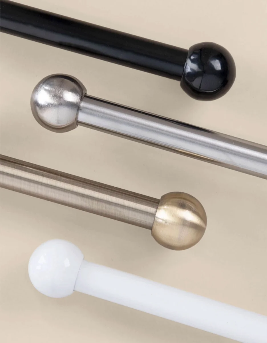 Innehåller justerbara stänger 90-160 cm, 2 st ändknoppar och 2 st väggfästen.