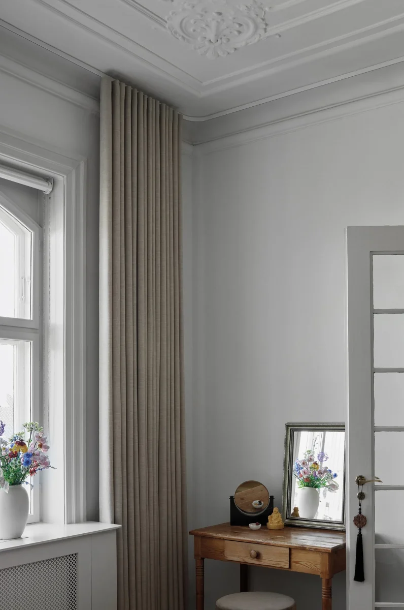 För utsidan av hörn där skenan ska fortsätta runt hörnet och längs nästa vägg, välj istället returböj.