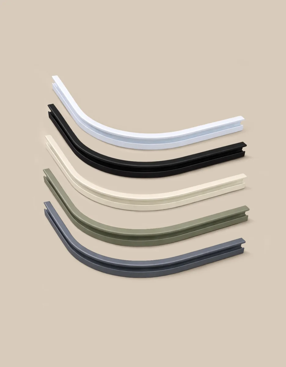 Komplettera med 2 stycken skarvar för att fästa hörnböjen i skenan.
