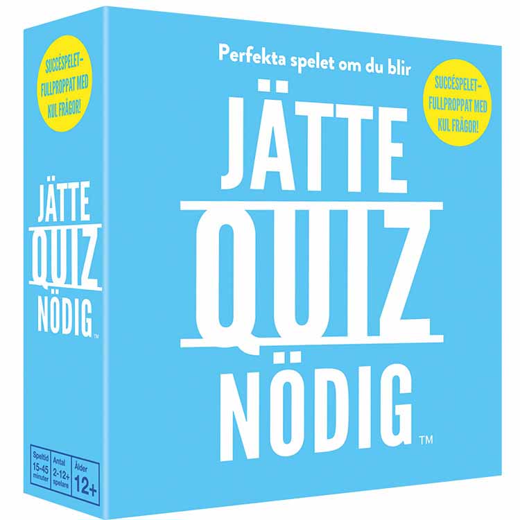 Succéspelet ”Quiznödig” har snabbt blivit ett av Sveriges populäraste frågespel! För alla som inte kan få nog av underhållande frågesport kommer här Jättequiznödig – fullproppat med över 400 kul och utmanande frågor!