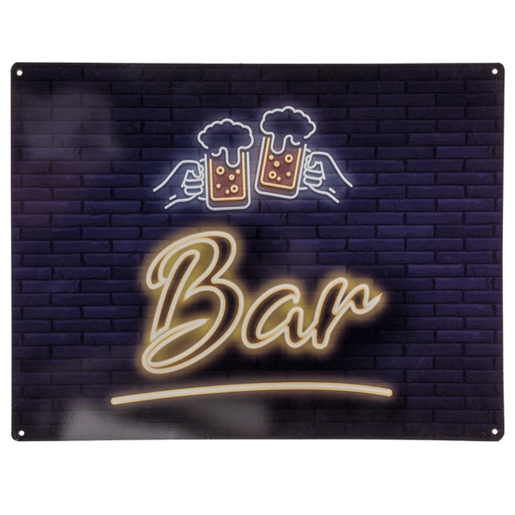 Skapa en inbjudande atmosfär i vilket rum som helst med denna stiliga ”Bar” metallskylt!