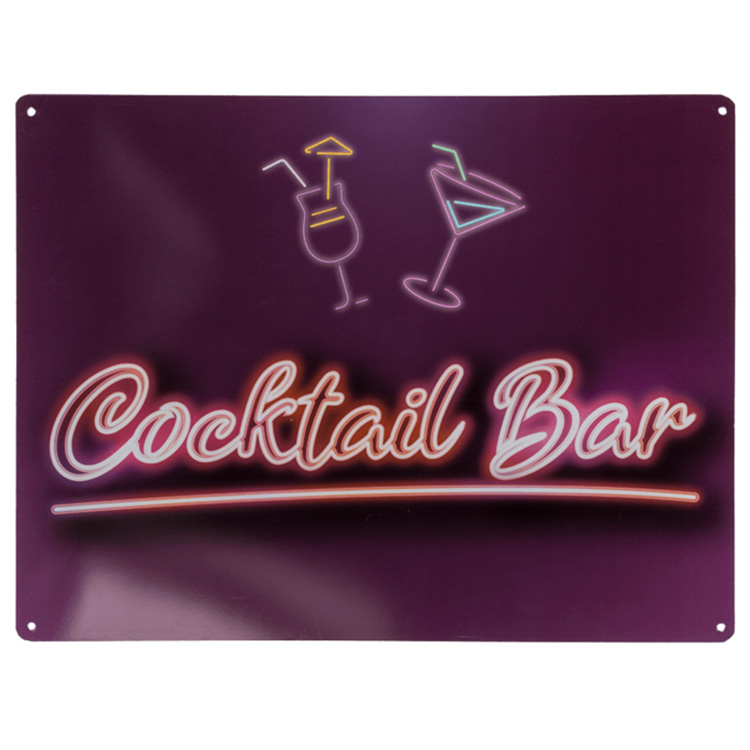 Ge din hemmabar eller samlingsplats en touch av retroglamour med denna charmiga ”Cocktail Bar” metallskylt! Med sina lekfulla neondrinkmotiv och klassiska typsnitt, förvandlar denna skylt snabbt och enkelt vilket utrymme som helst till en inbjudande social hotspot. Den här skylten är den perfekta inredningsdetaljen för dig som vill skapa en cool barupplevelse hemma eller ge din arbetsplats en unik stil.