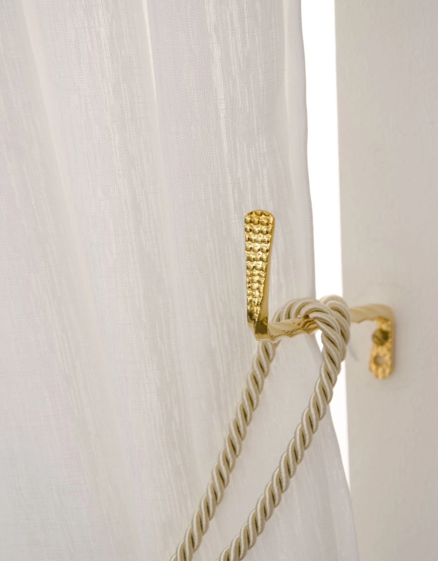 Snyggt omtagsfäste med vackra detaljer. Använd tillsammans med gardinomtag för att fästa gardinen eller som det är genom att föra gardinen direkt bakom fästet.