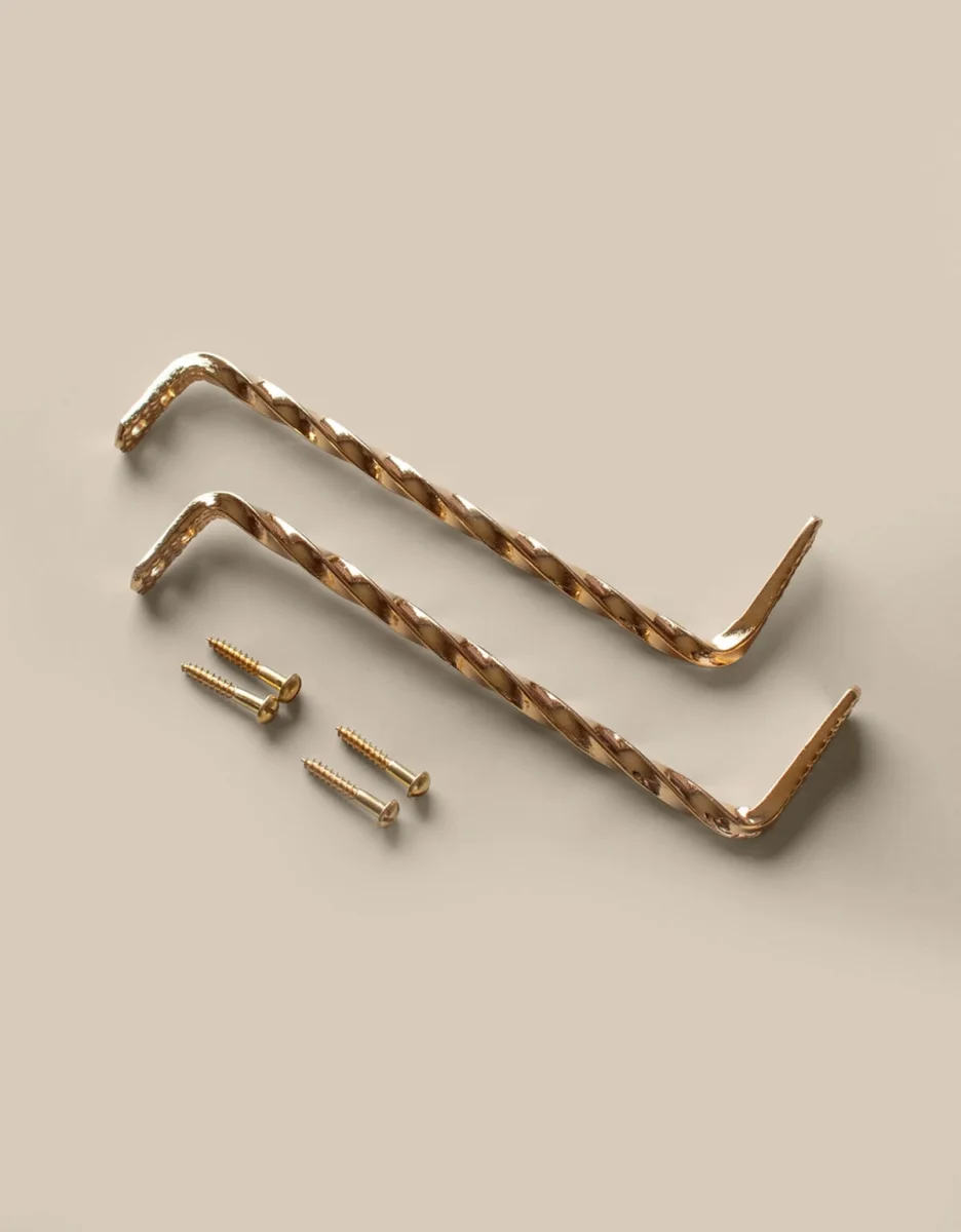 Monteras på vägg med medföljande skruvar. Finns i vitt, antikmässing och som guldpläterad.