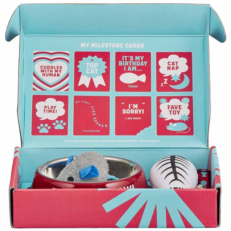 New Cat Starter Kit från Wild & Woofy innehåller det som behövs för att få den nya katten att känna sig som hemma. En perfekt present till alla nya kattägare! Kommer i en fin presentförpackning: 220x185x70 mm.