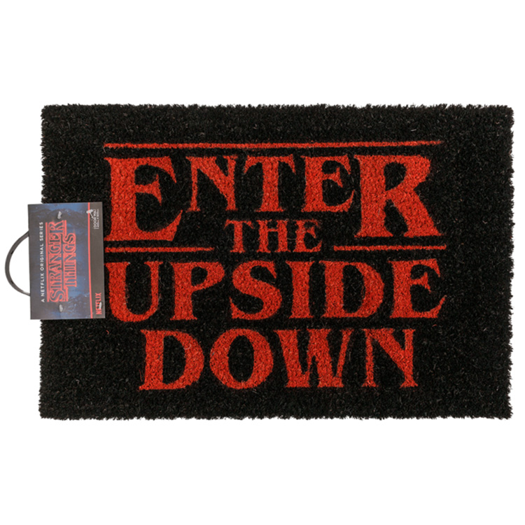 Stig in i en värld av mysterium och äventyr redan vid din tröskel med vår Stranger Things dörrmatta med budskapet ”Enter The Upside Down”.