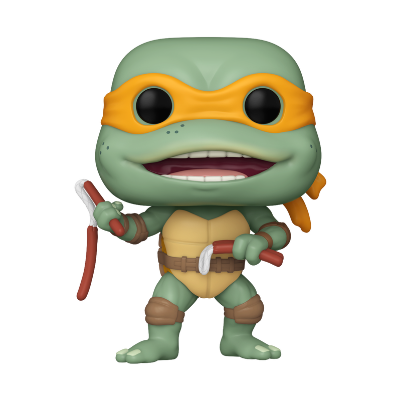 Michelangelo är här för att servera korvlänkar—nunchaku-stil! Denna radikala hjälte är redo att utdela lite rättvisa i din Teenage Mutant Ninja Turtles-samling! Vinylfiguren är cirka 9,1 cm hög.