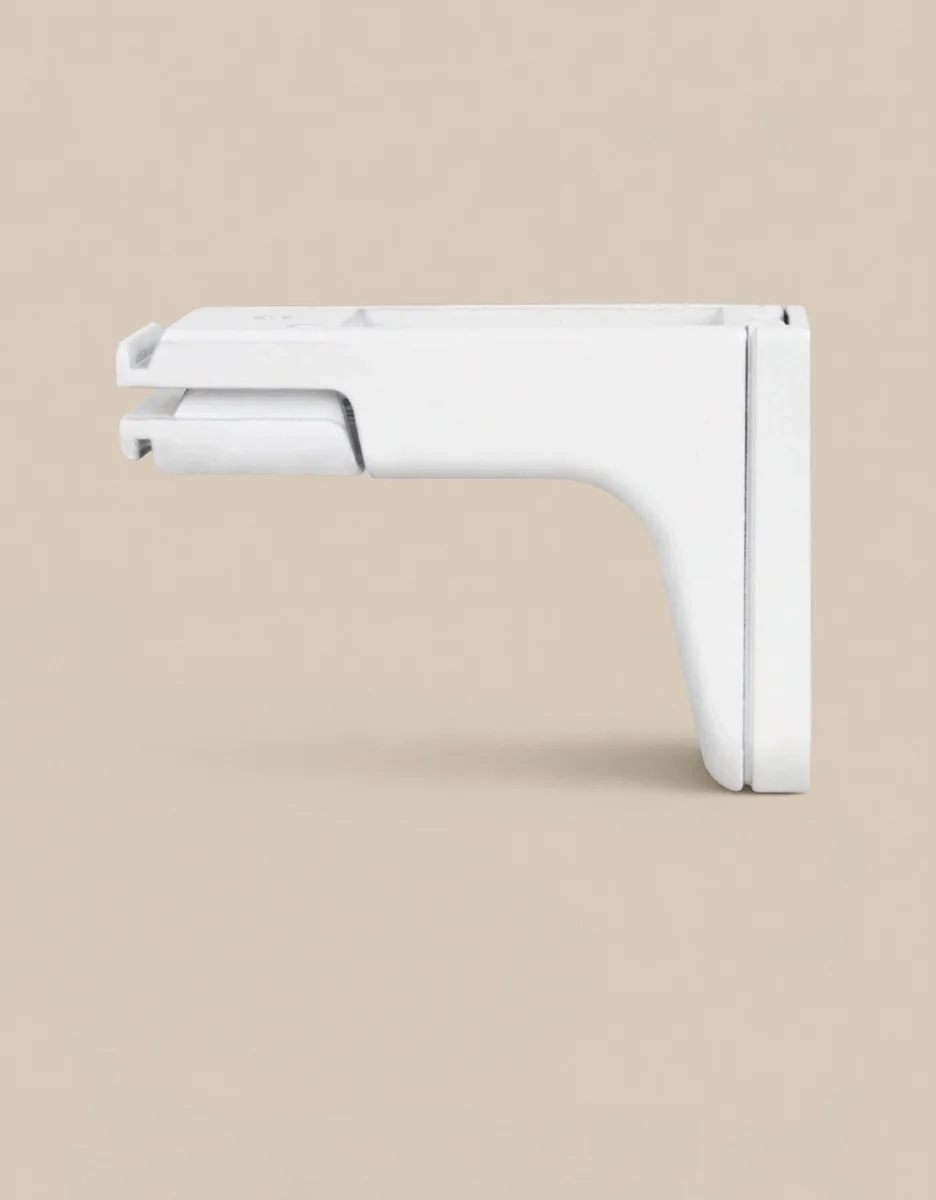 Väggfäste som passar Daytona gardinskena. Skruvas i väggen och gardinskenan klickas enkelt på fästet. Fästet bygger 6,7 cm ut från väggen. Höjden är 5 cm och breddan 2,5 cm. Finns i färgerna vit, svart, stål och antikmässing.