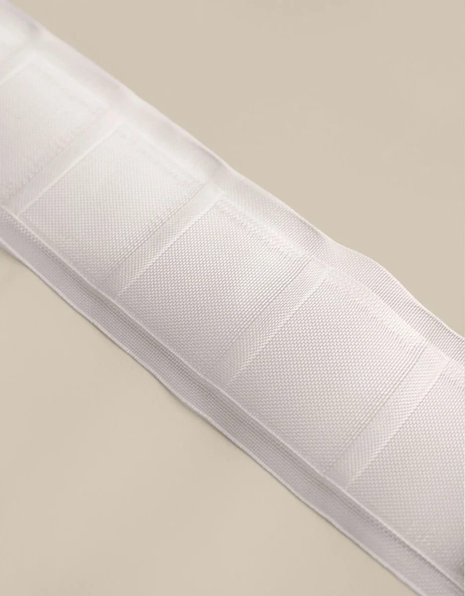 Veckband som sys fast i toppen av en gardinlängd. Kombinera med fingerkrokar. Bandets höjd: 70 mm Material: Polyester Längd: 3,1 m